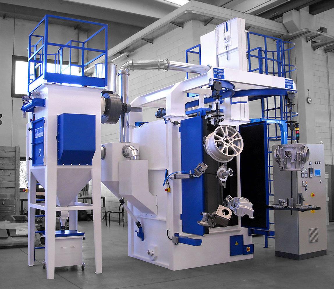 吊鉤式拋丸機鹽城拋丸機廠家標準系列產品,機器無地坑,節約施工費用,利于環保工作,不損害健康。工件能獲得均勻良好的拋丸清理,拋丸器引進國外先進技術,拋丸量大、易損件耐磨程度高。??作為一種系統,吊鉤輸送機能夠為工件的輸送提供多種不同的優化方案,大大節約了生產成本,同時解決了工件的輸送問題,?軌道的獨特設計,如岔道分流,岔道合流結構,滿足了工件的不同輸送要求。路線的改變或延伸等改造費用很低,工件吊掛式可在拋丸機室體外通過手,叉車,起重機,電動葫蘆或機器人操作,然后輸送到拋丸室,工件所有表面被一次性清理,吊具由電機驅動旋轉和振動,在小型設備中,吊具也可設計正反旋轉,實現對工件進行不同角度的拋丸,避免死角。吊鉤式拋丸機適應于小型,中型和大型尺寸的工件。電動導軌帶自動驅動機械機構,載重可達10,000kg,電動導軌上可預編程驅動輥有獨立的驅動單元。裝料和卸料工位可靈活適應現場條件。整個懸掛導軌系統裝有安全開關,過載保護以及升降結構,實現吊具輸送方向的控制,帶提升齒輪的吊車載重幾乎不限。使用清潔的丸料清理鑄件效率高,如丸料中含有型砂,芯砂或者鐵銹將大大降低拋丸機的清理能力甚至導致工件磨損加劇和增加沉淀物,分離器(風選,磁選或兩者結合)能可靠并有效的解決丸料的凈化問題。