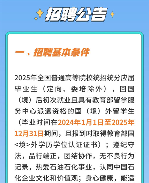 2025年度中國石化畢業(yè)生招聘