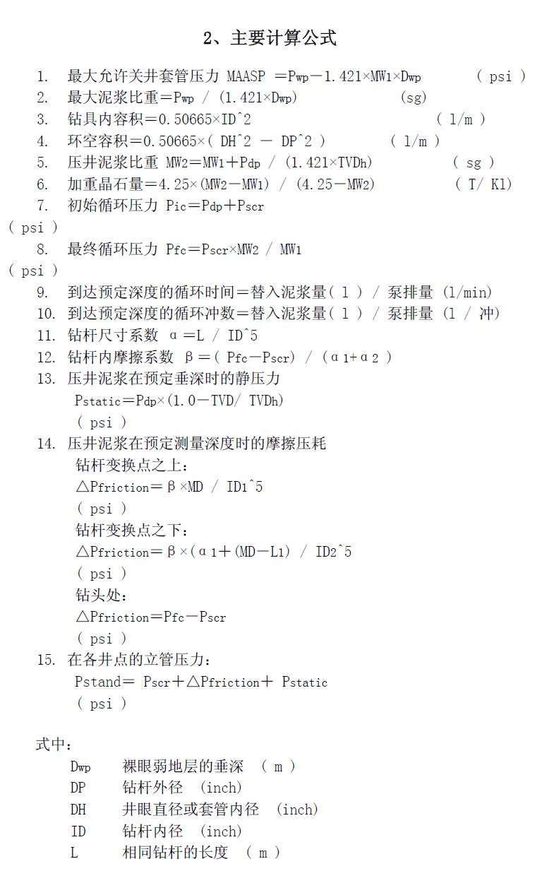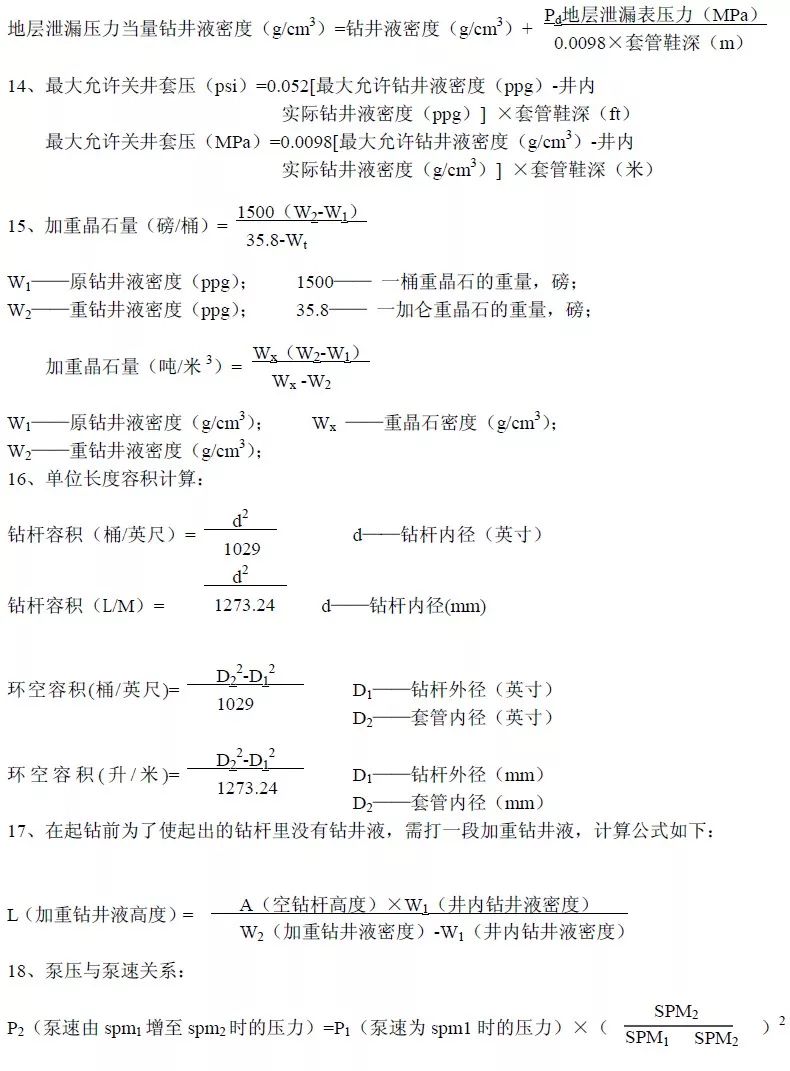 必看!井控常用計算公式