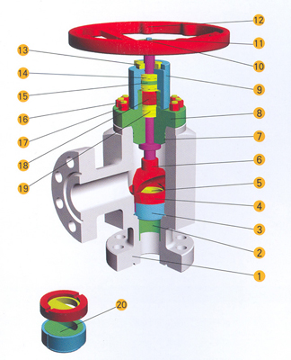 孔板式節流閥是由兩塊極具抗沖損能力的特殊碳化鎢材料模制而成。通過對其中一個板孔的旋轉,改變上下兩塊板孔上的孔與孔的同心度,從而實現對液體或氣體流量的控制。 此閥是用于鉆井、壓裂、泥漿循環和地面高壓注氣采氣等管匯設備。該閥最顯著的特點在于關閉閥門時,進、出口之間的壓力差,能使兩塊孔板緊緊地壓在一起,實現密封切斷的功能。尤其是遇到壓力突然升高,或因泄露造成壓力突然降低等緊急情況時,可通過預先設置在高、低壓傳感器上的壓力信號值,使其自動關閉和切斷。由此則可避免重大危險事故的發生。 該閥還具有使用壽命長、抗沖損及抗磨損能力強等特點。