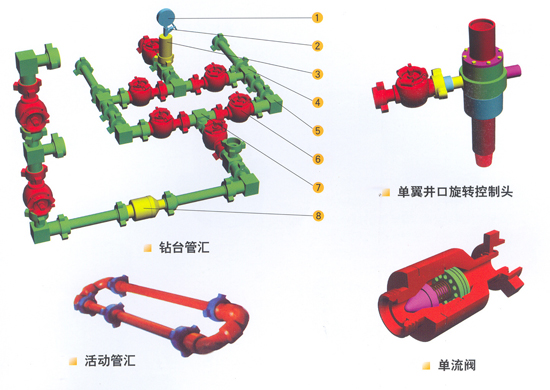 在測試過程中,地層流體經(jīng)鉆桿或油管流到地面之后,必須要有控制裝置引導(dǎo)到分離器和燃燒器中。此裝置稱為地面控制裝置。它可以安全有效地控制流體的壓力和流量。 一、控制頭 控制頭連接在測試管柱的最上部,分為旋轉(zhuǎn)的和不旋轉(zhuǎn)的兩種。根據(jù)其承壓能力可分為35Mpa、70Mpa和105Mpa三種。控制頭既可讓管柱內(nèi)高壓液流流出,也可向井內(nèi)泵入流體。 二、鉆臺管匯 用于控制流體壓力、流量的管匯。上接控制頭,下連分離器、放噴管線。 鉆臺管匯的工作壓力分為35Mpa、70Mpa和105Mpa。相應(yīng)的試驗壓力為70Mpa、105Mpa和140Mpa。 三、活動管匯 用于連接控制頭、鉆臺管和放噴管線的高壓活動管匯。它由特制加厚無縫鋼管和由壬及活動彎頭組成。 管匯工作壓力分為35Mpa、70Mpa和105Mpa。相對應(yīng)的試驗壓力為70Mpa、105Mpa和140Mpa。 活動管匯要定期檢查、潤滑、更換密封圈和進行液壓密封檢驗,確保測試安全。