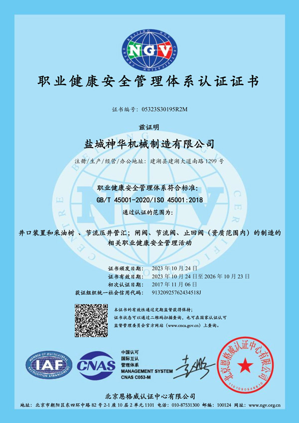 職業(yè)健康安全管理體系認(rèn)證證書(shū) |
