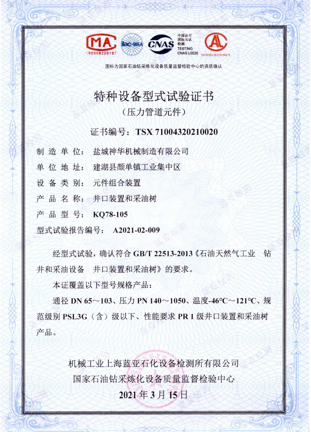 特種設(shè)備型式試驗(yàn)證書(shū) |